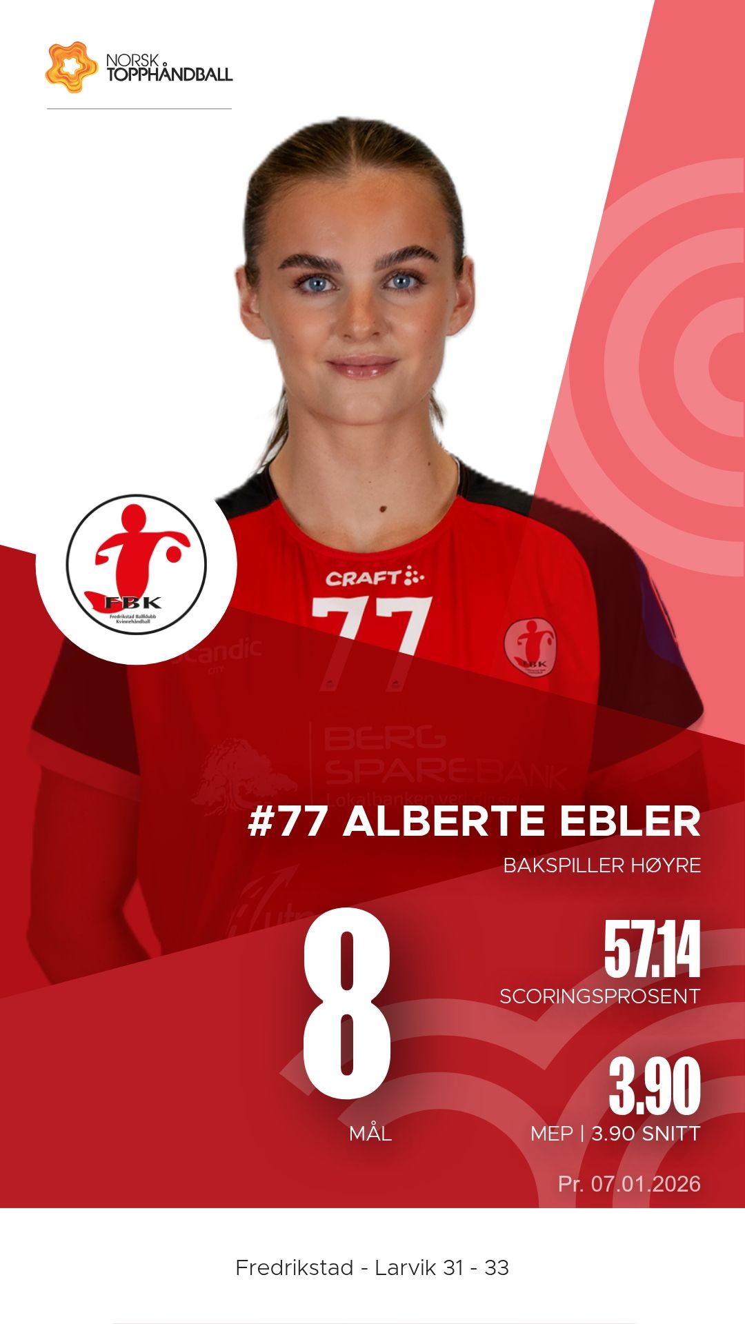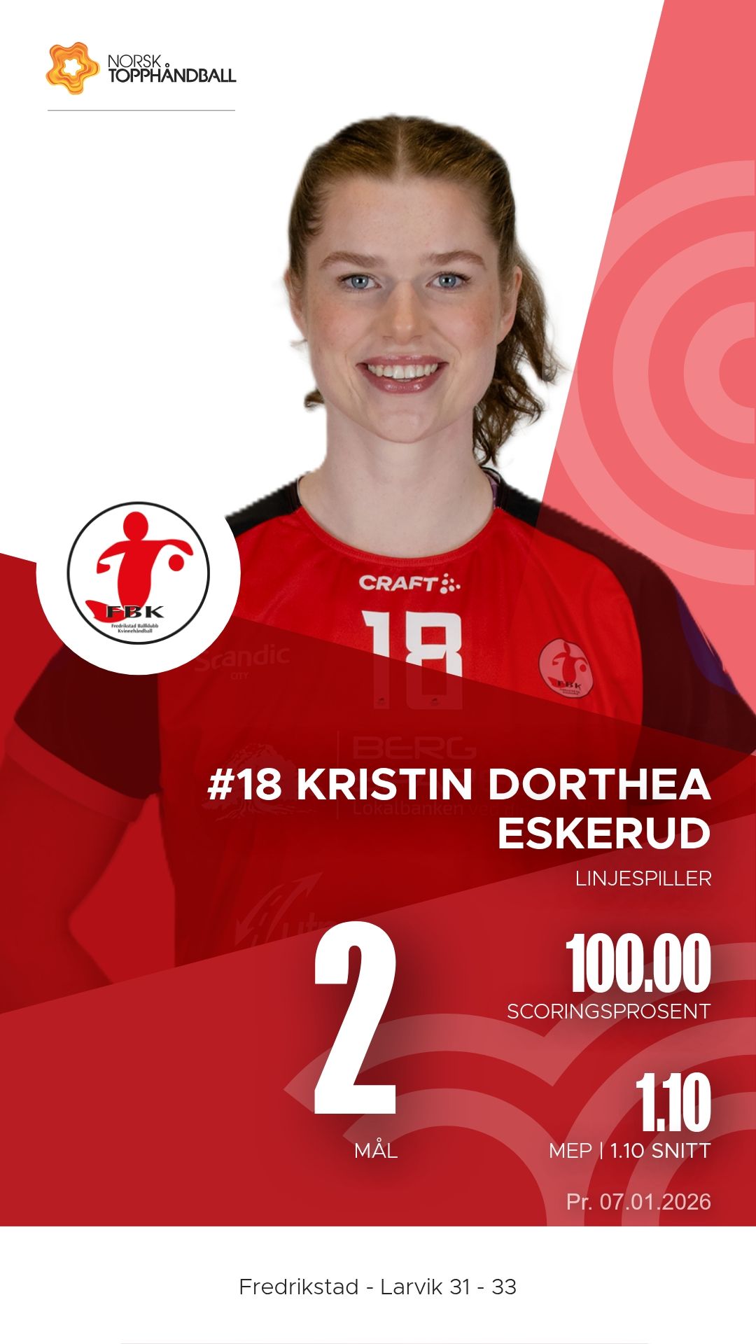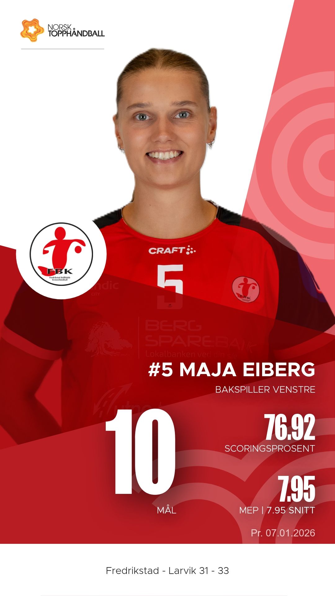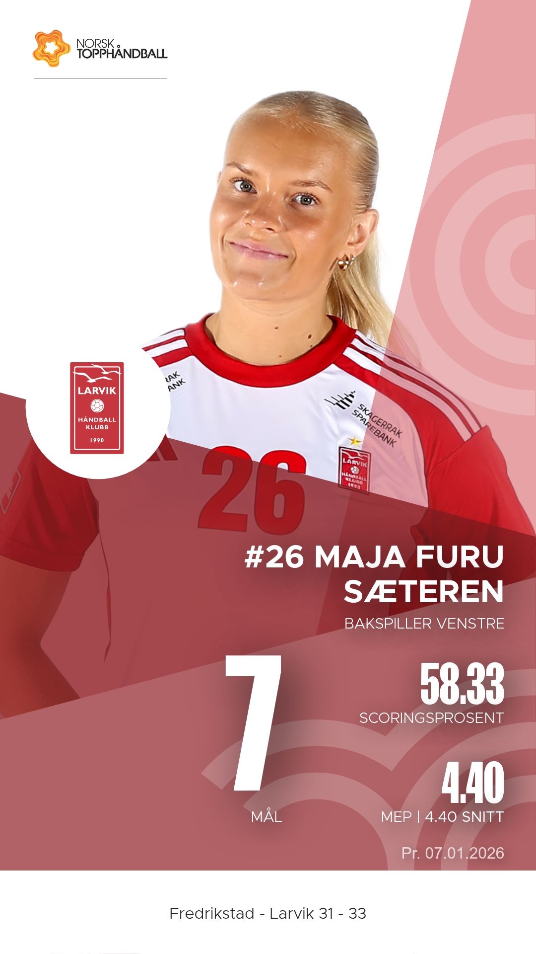 For Fredrikstad var Maja Eiberg lagets klart mest toneangivende spiller. Hun scoret ti mål og hadde seks assists, mens Alberte Ebler og Sofia Shauri Dalsveen bidro godt fra bakspillerposisjon. Linjespiller Kristin Dorthea Eskerud satte to viktige scoringer, men Fredrikstad slet med å stenge Larviks offensive kraft i sluttminuttene.